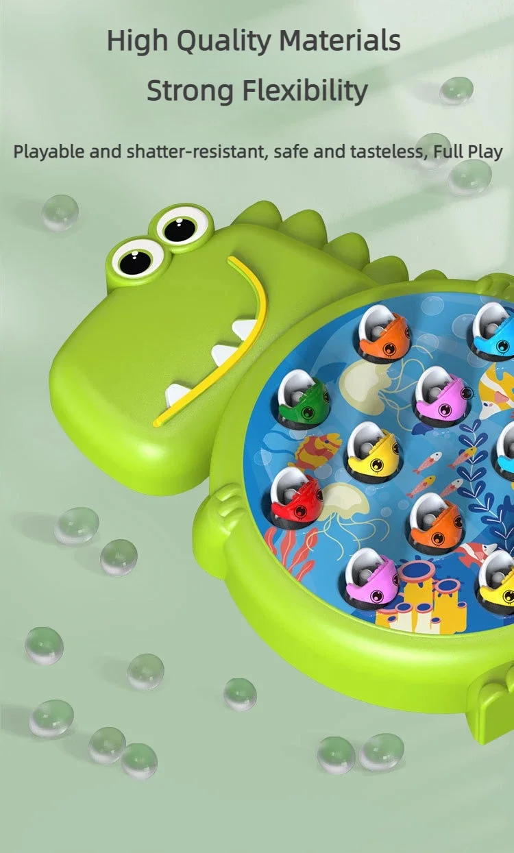 Transforme os momentos de brincadeira em uma verdadeira aventura aquática com esse divertido jogo de pesca infantil! Com design em forma de crocodilo e peixinhos coloridos que giram, as crianças vão adorar desafiar a coordenação e competir para ver quem pesca mais!